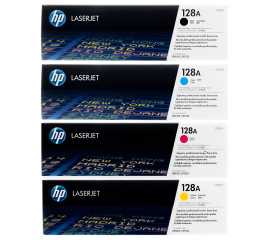 Features: HP 128A (CE320A, CE321A, CE322A, CE323A) toner cartridges work with: HP LaserJet Pro CM1415, CP1525. Set of 4 Color Black, Cyan, Magenta, Yellow Certified Original HP Cartridge Yield (approx) per cartridge: 1,300 pages cyan, 1,300 pages magenta, 1,300 pages yellow Get all the...