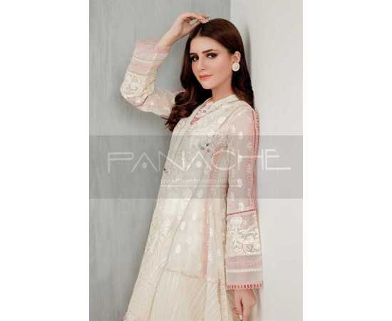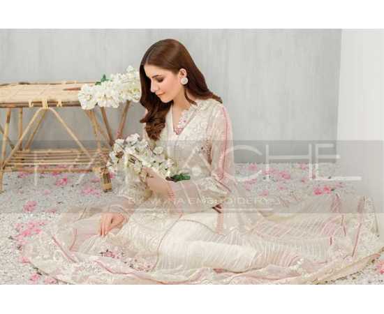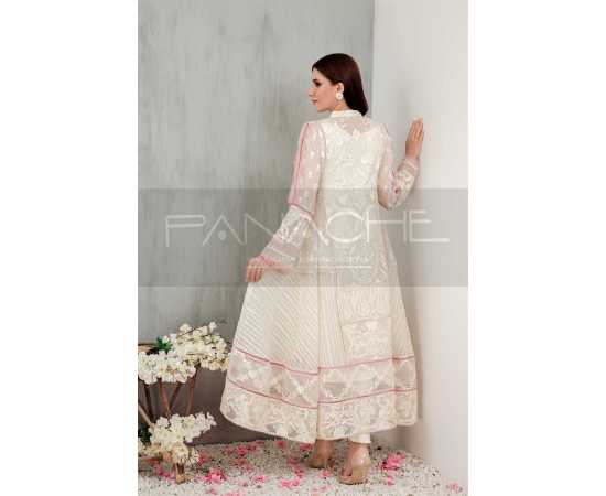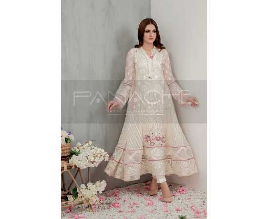 - A decent yet trendy design – This ivory frock has multiple panels that add volume & style to a silhouette. It has been adorned with handpicked embellishments and fine craftsmanship in the form of intricate hand embroidery. The Pink touches give this gorgeous dress just the pop of color that it needs!
