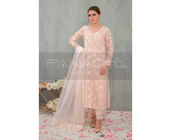- A formal kameez with generous machine embroidery, intricate handwork on the body, elegant laces and pearl embellishments on the daman. The laces for this design have been handpicked and selected thoughtfully — all to tailor a dress that you love.
