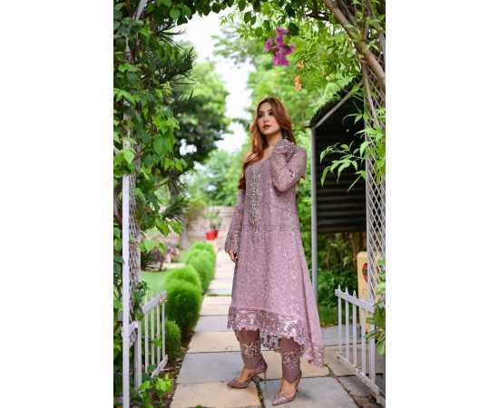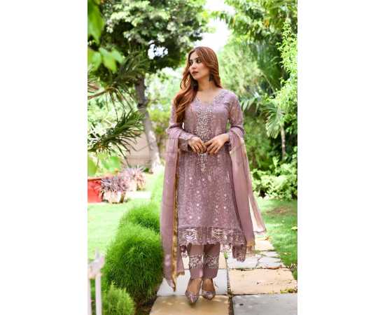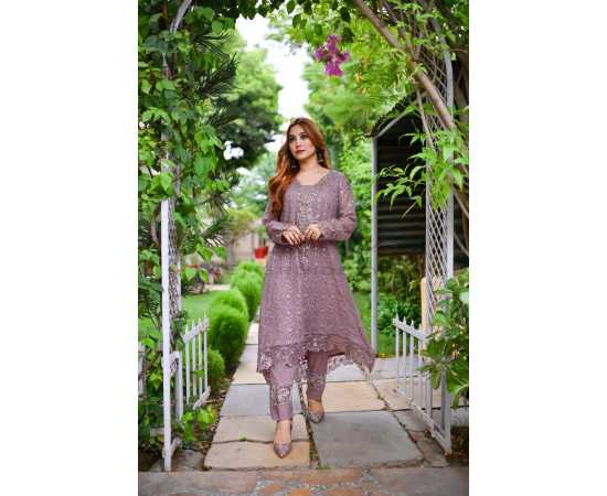 (Ma-23) - Embroidered Dress For Women 3Pcs Suit - Lilac
