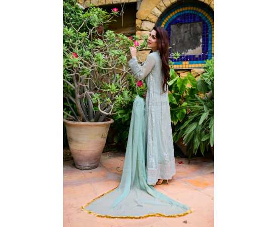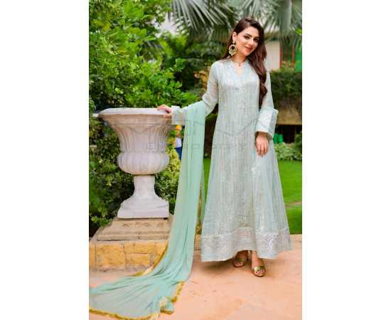 (Ma-26) - Embroidered Dress For Women 3Pcs Suit - Mint-Green