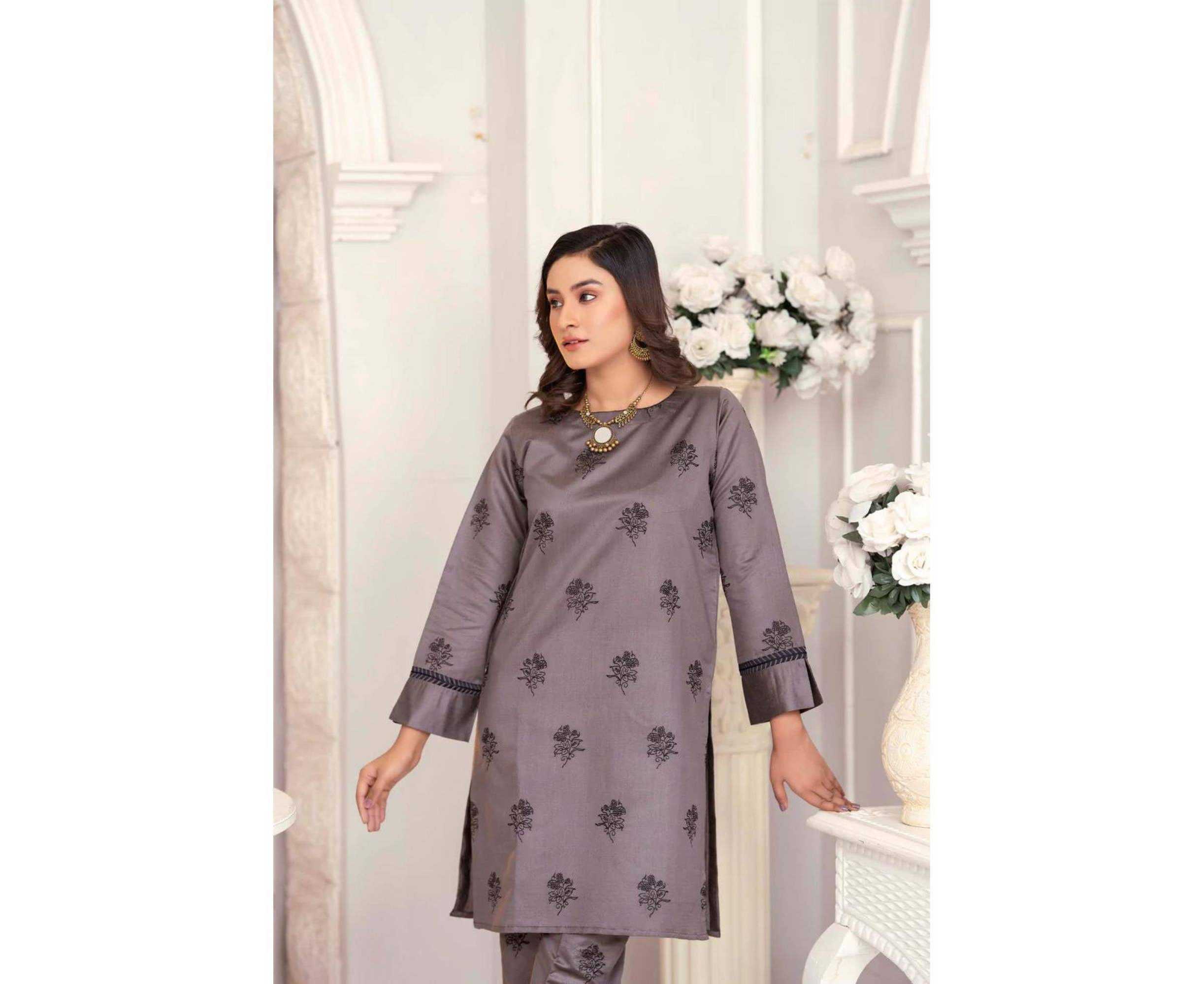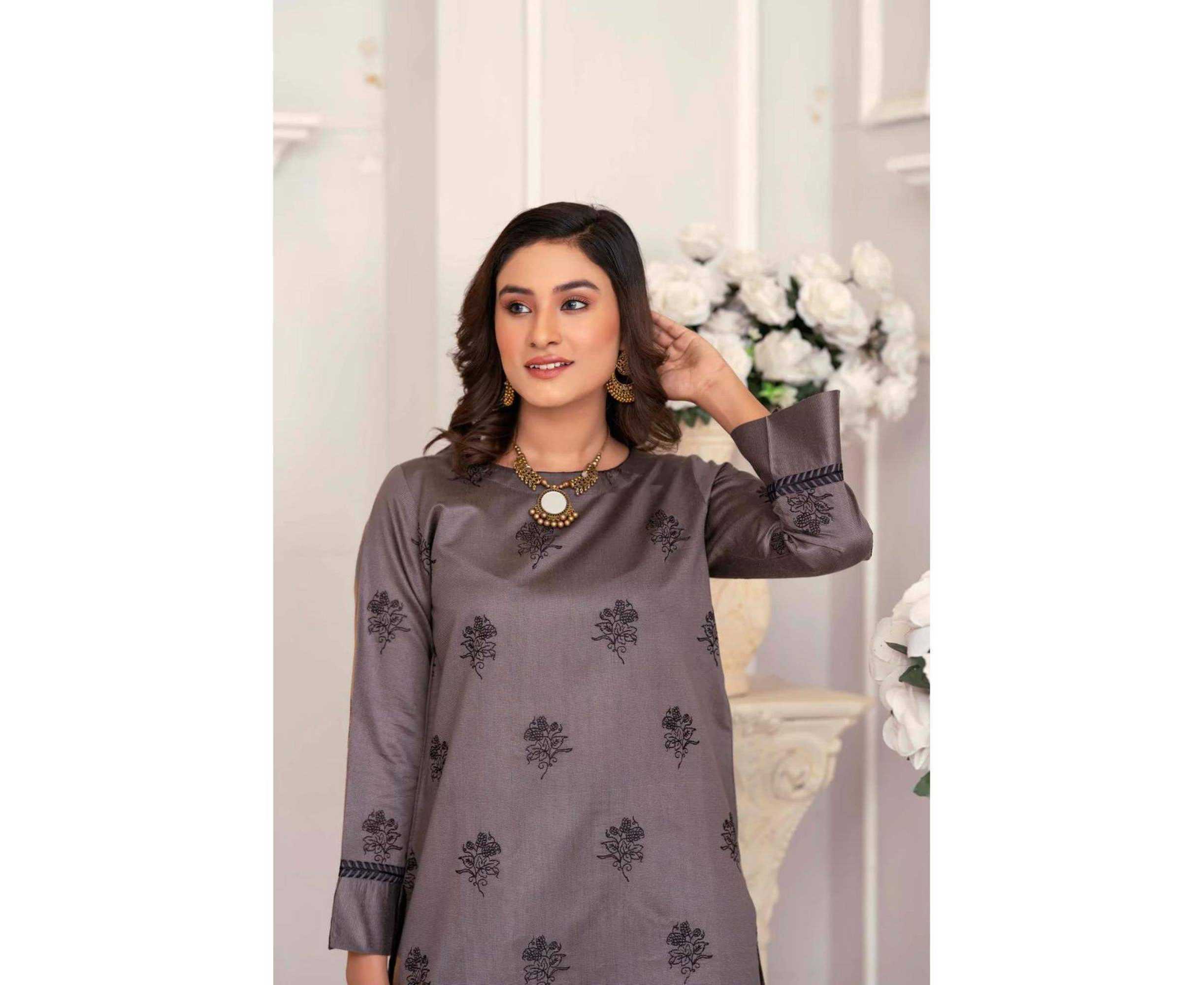 Bint al Bilaad Khadi Viscose Fancy Embroidered Suits For Women - Dark Grey - Pack of 2 PCS