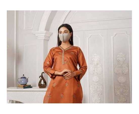 Embroidered Two Piece Suit Khadi Viscose Best for all season - Orange - BAB37