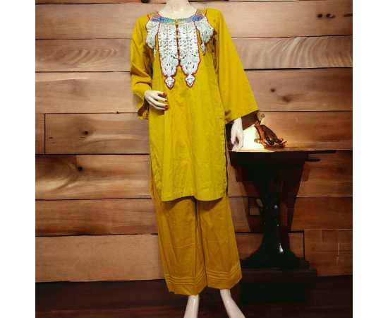 Musturd Embriodery Designer Dress - 2 Piece