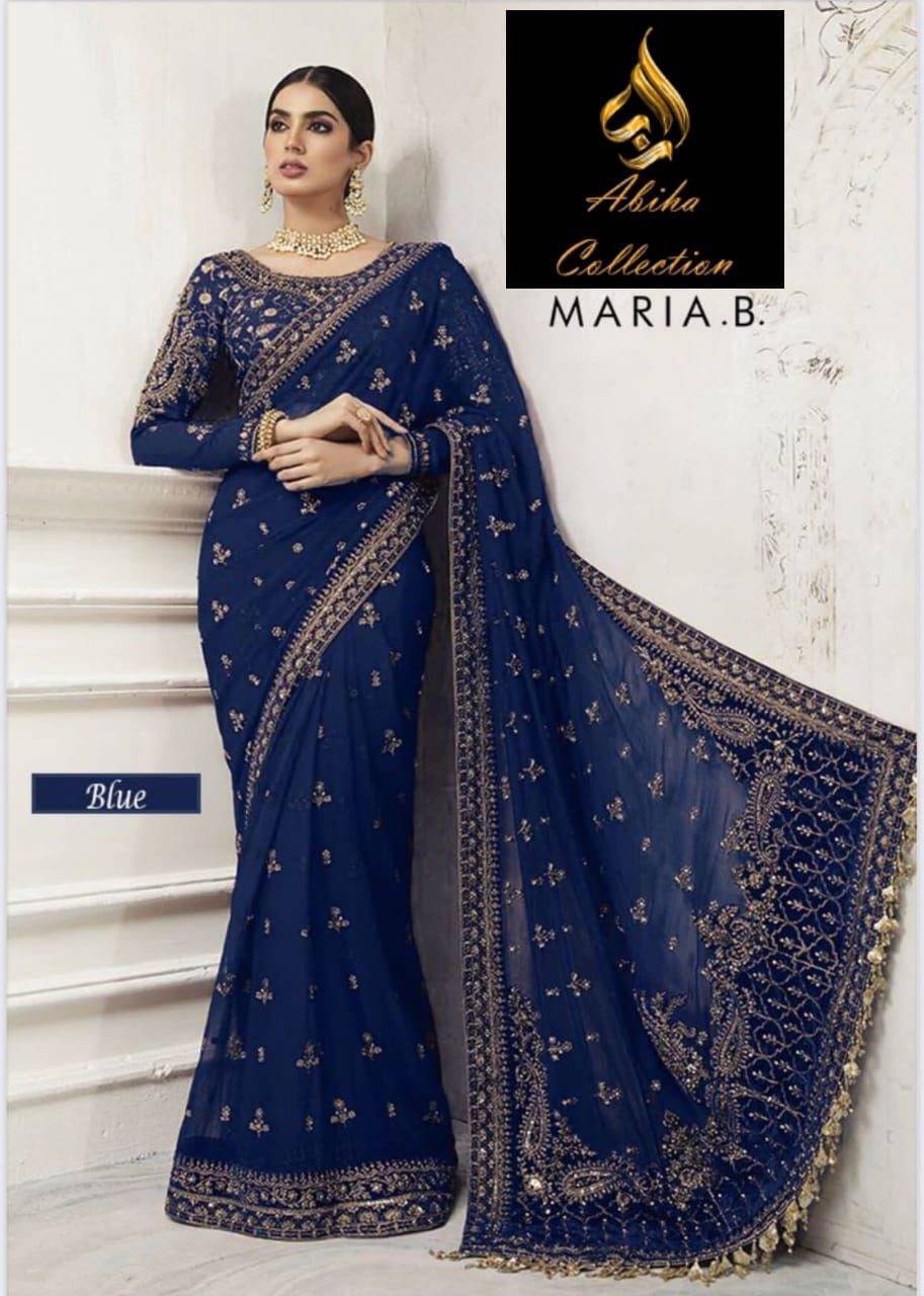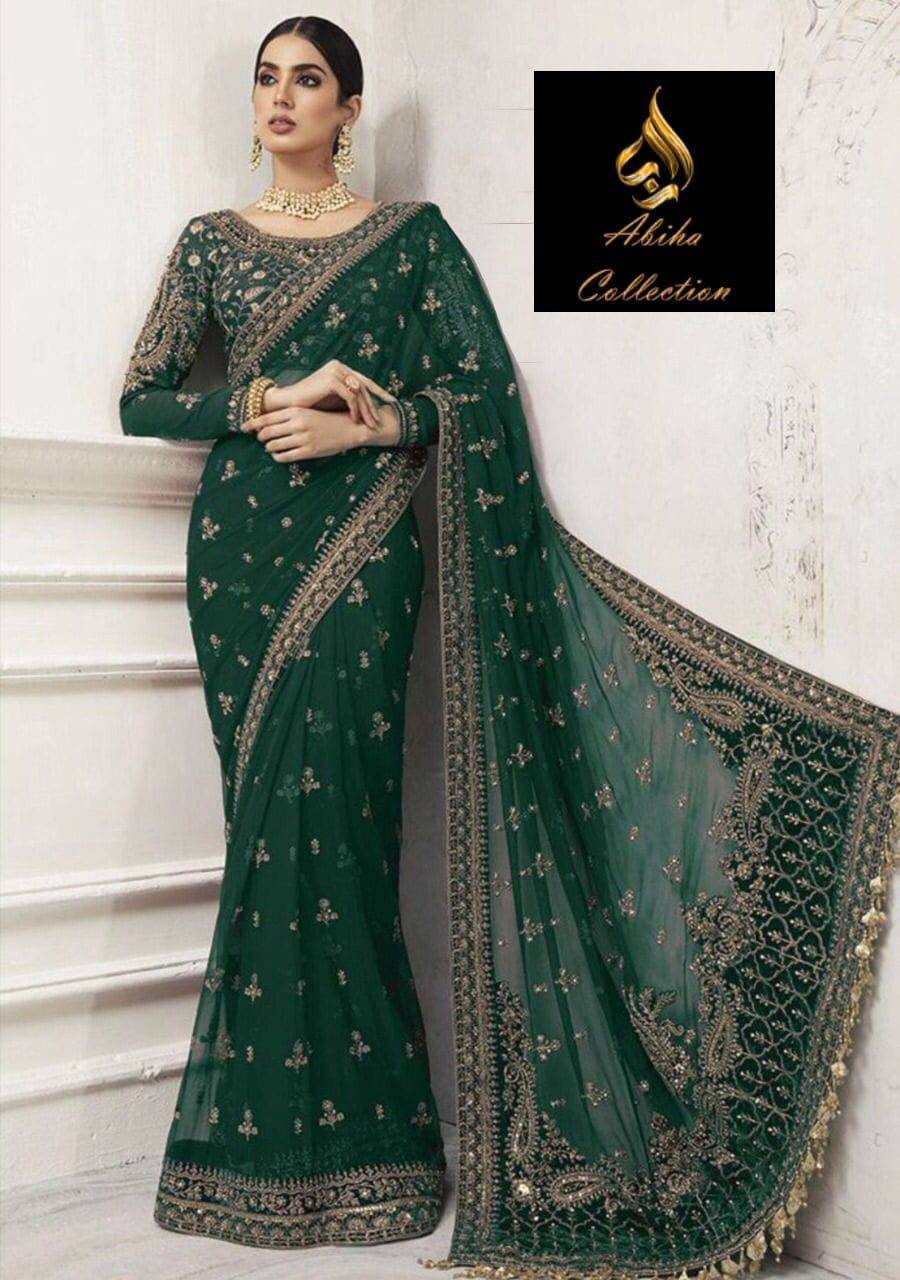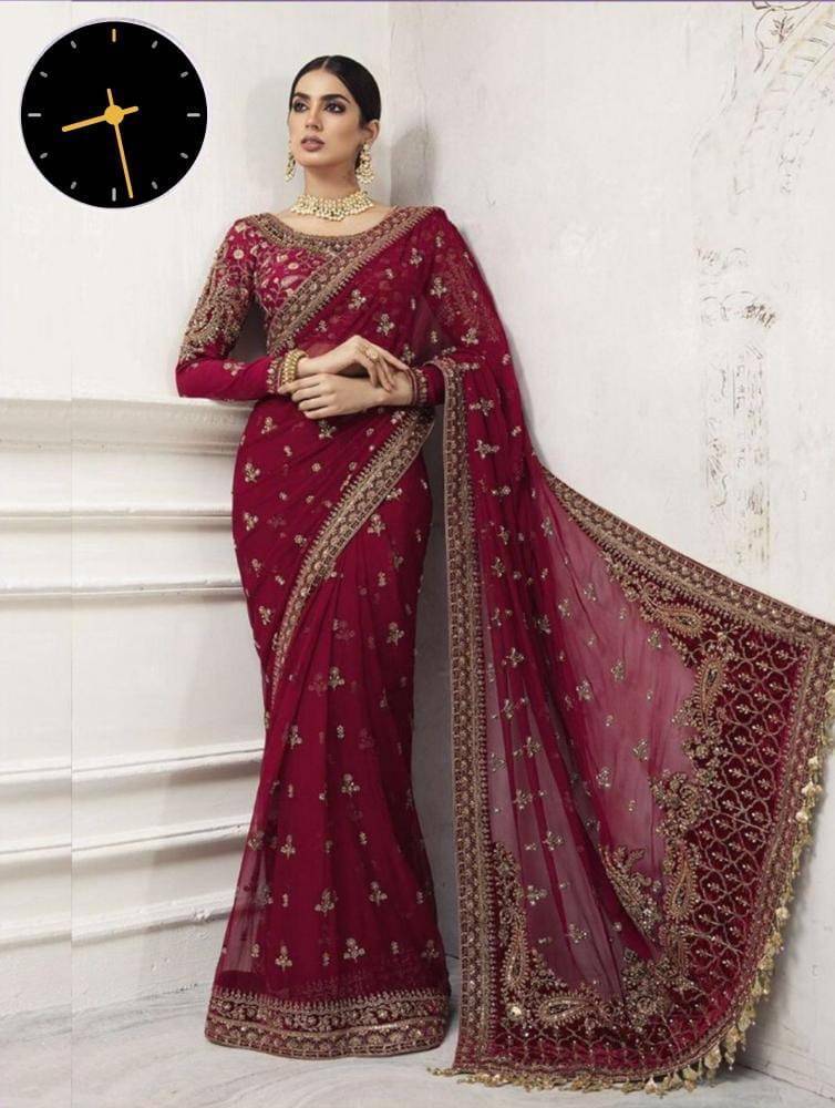 - Sari Heavy Embroidery With Sequence Work & Stone Hand Work Â