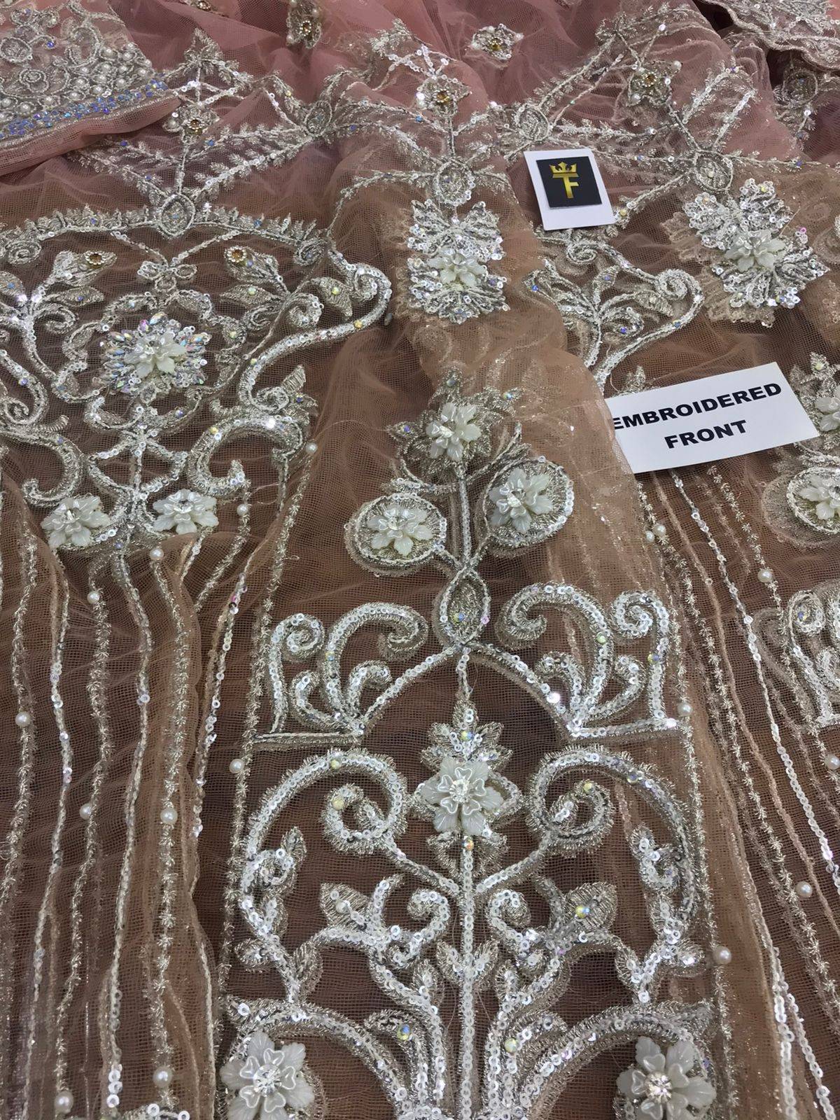 - Front Fully Embroidered With Sequins Work With 3d Flowers