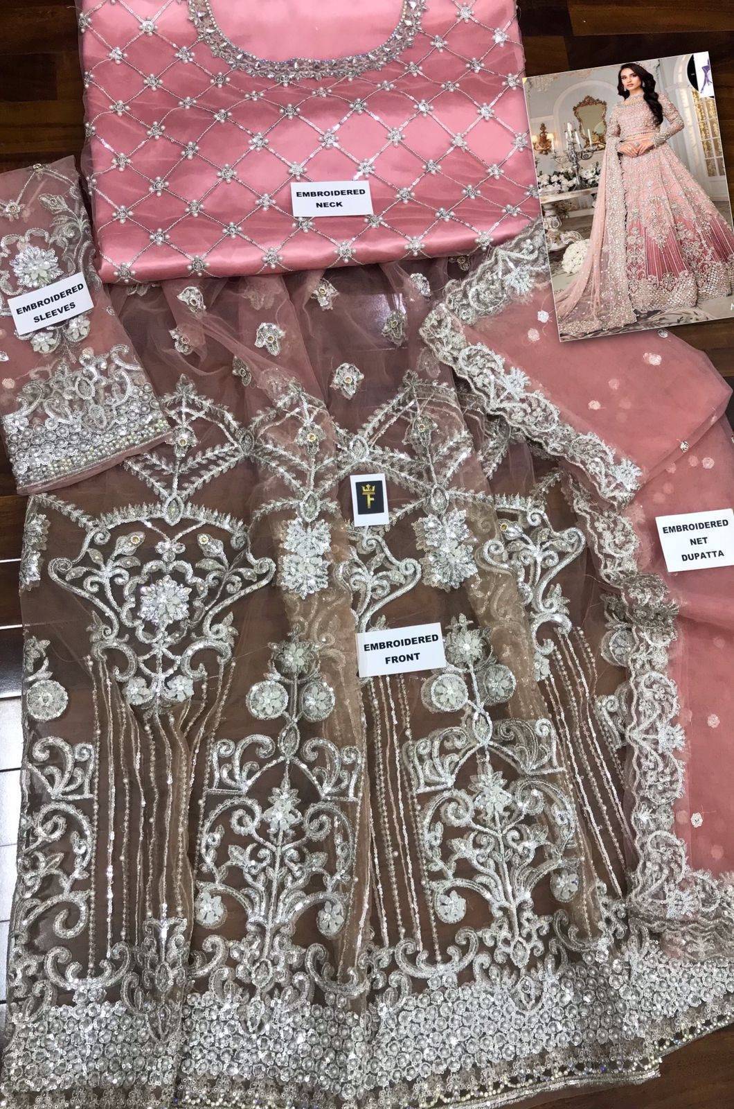 Heavy Embroidered 3 PCS Women Bridal Unstitched Frock - Crepe Pink - Ra-31