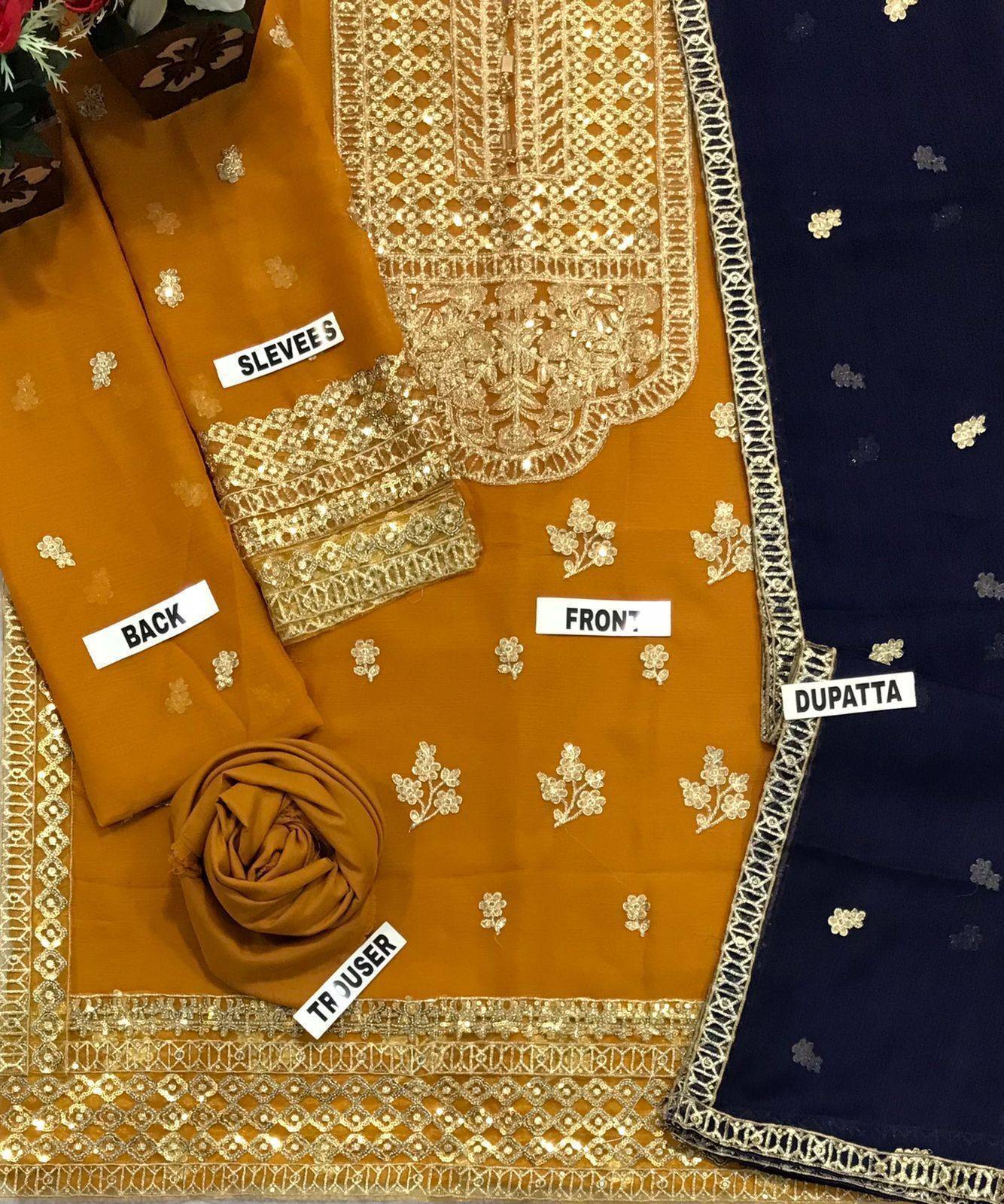 - Embroidered Chiffon Sleeves & embroidered