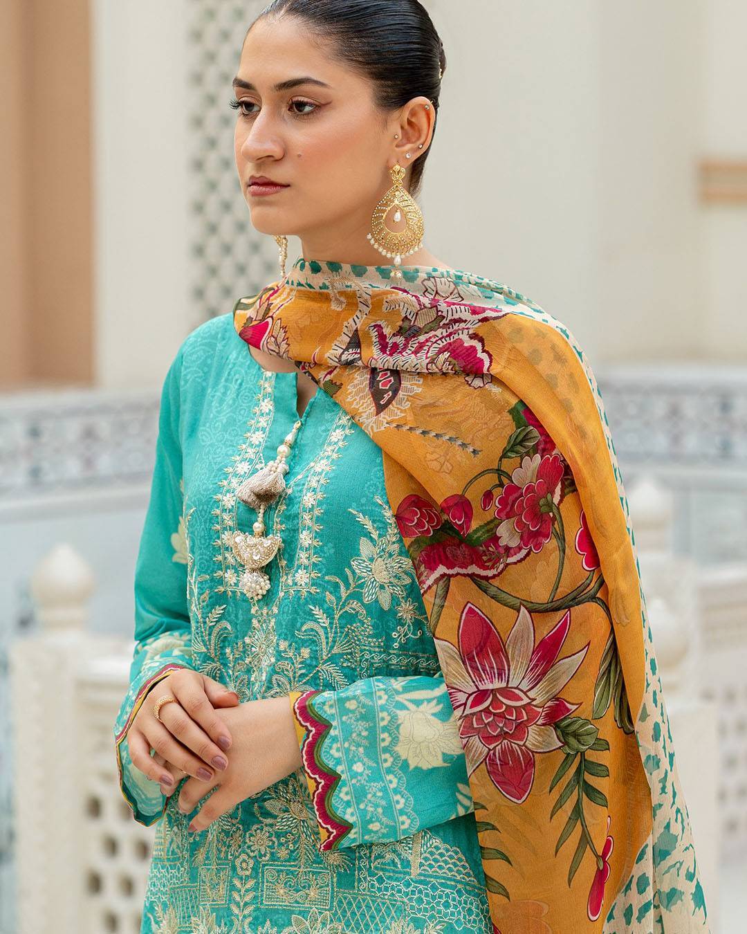 - The dupattas feature delicate prints or embroidery that mirror the motifs on the shirts, creating a harmonious and cohesive look.