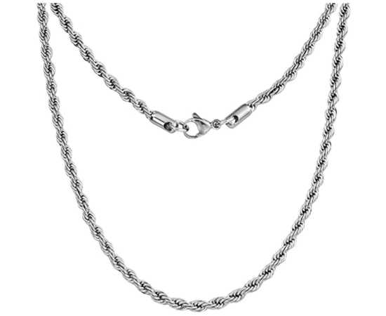Twisted Silver Rope Chain For Men