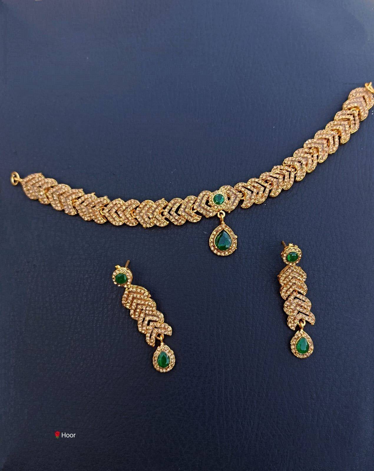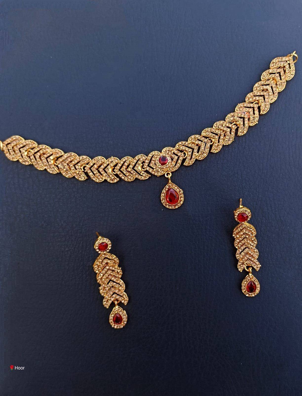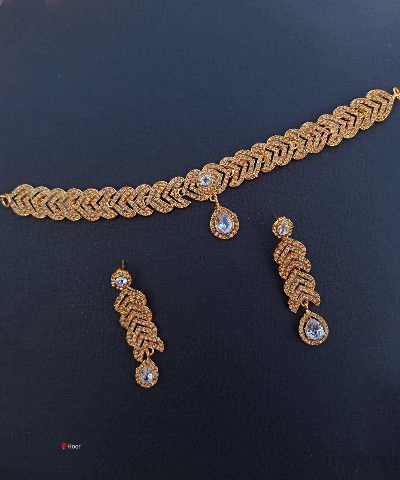 Beautiful Golden Choker Necklace with Earing Jewellery Set