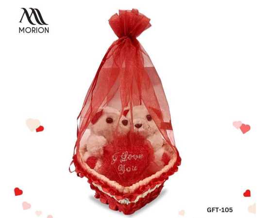 Couple Teddy Bear Love Heart Basket For Loved One's GFT-105