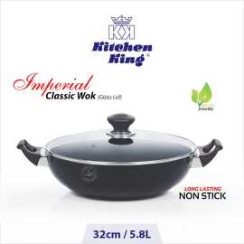 Kitchen King Imperial Classic Wok (Glass Lid) 32Cm