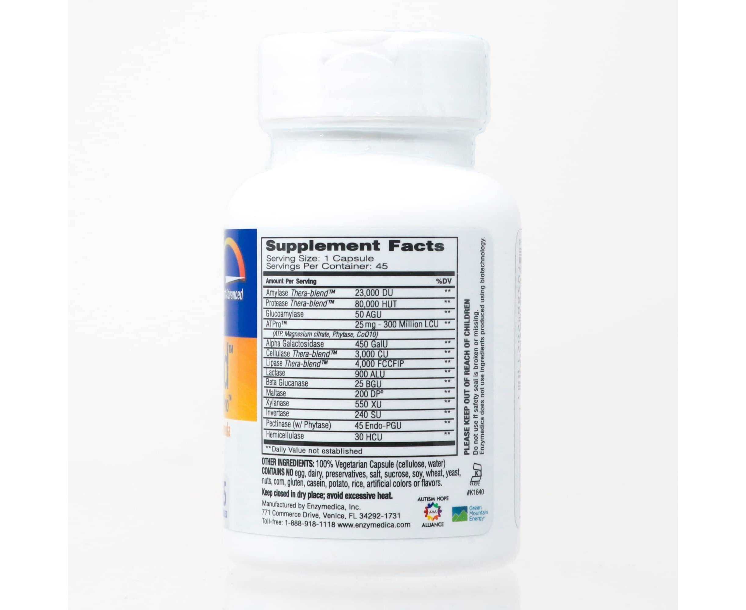 - Amylase Thera-Blend, Protease Thera-Blend, Glucoamylase, Atpro (Atp, Magnesium Citrate, Coq10), Alpha Galactosidase, Cullulase Thera-Blend, Lipase Thera-Blend, Lactose, Beta Glucanase, Maltase, Xyanase, Invertase, Pectinase (W/Phytase), Hemicellulase