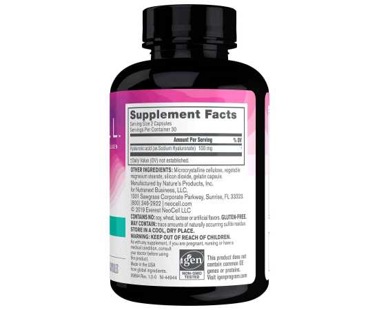 - Promote The Radiant Beauty In You And Feel Good That Neocell?S Hyaluronic Acid Is Glutenfree, Soyfree And Lactosefree And Contains No Artificial Flavors And Only Nongmo (Igen Tested) Ingredients