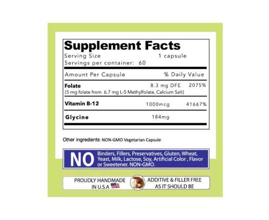 - Our Daily Vites Lmethylfolate 5 Mg B 12 Methylcobalamin (1000 Mcg) Active Folate, Methylated B12 And Glycine For Brain, Heart & Fetal Health, 60 Count (2 Month Supply)