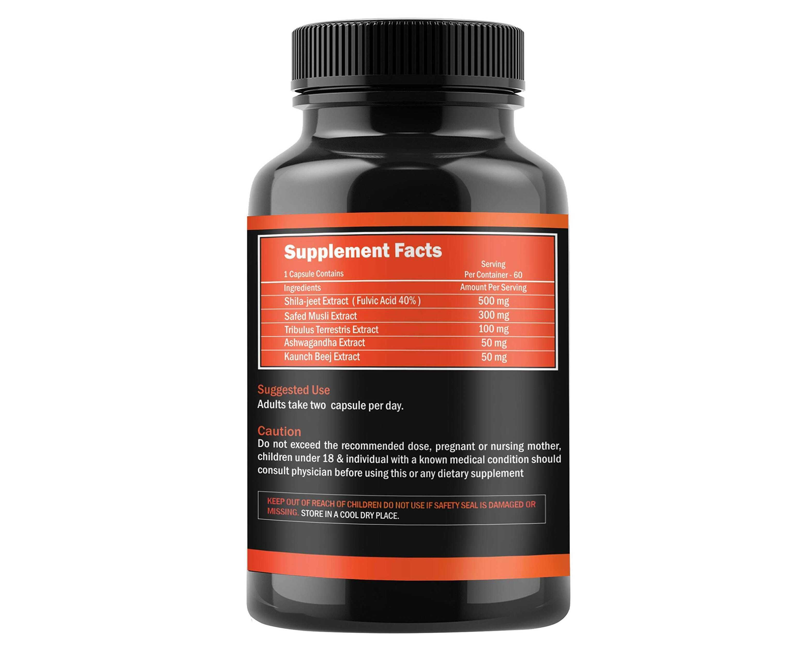 - Advanced formulation of powerful ingredients Shilajeet Extract, Ashwagandha, Safed Musli, Tribulus, Kaunch Beej