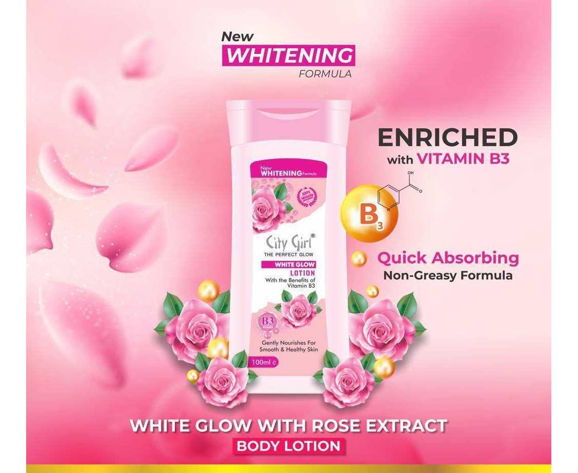 - City Girl White Glow Moisturizing Lotion Is Carefully Formulated With Vitamin B3,Â
