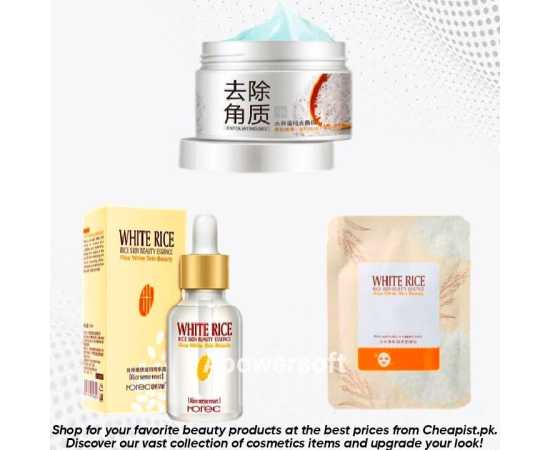 - 1 x White Rice Serum Exfoliating Rice Gel Face Scrub and Face Sheet Mask
