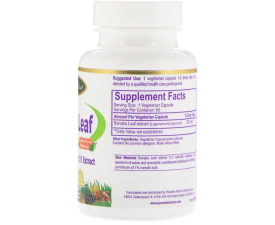 - Raw Material Banaba Leaf Extract 12 1 Naturally Containing A Full Spectrum Of Active And Synergistic Constituents Including But Not Limited To A Minimum Of 1% Corsolic Acid