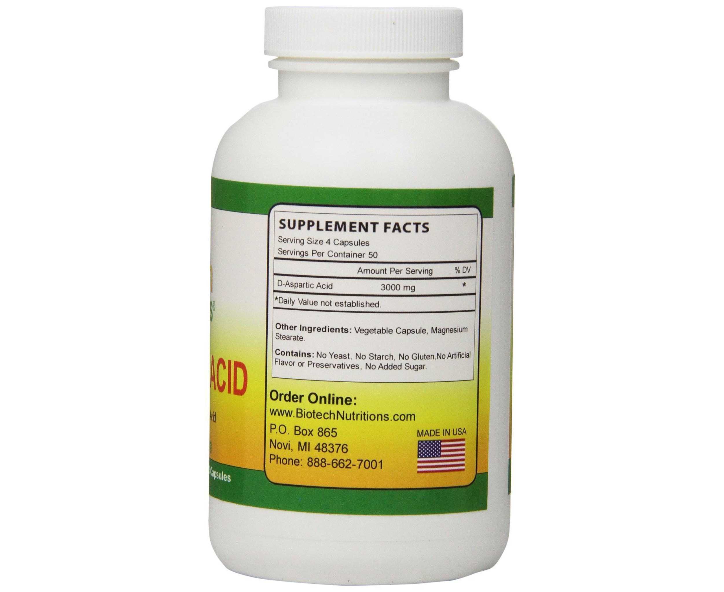 - Biotech Nutritions D-Aspartic Acid 200 Capsule 3000 Mg Per Serving