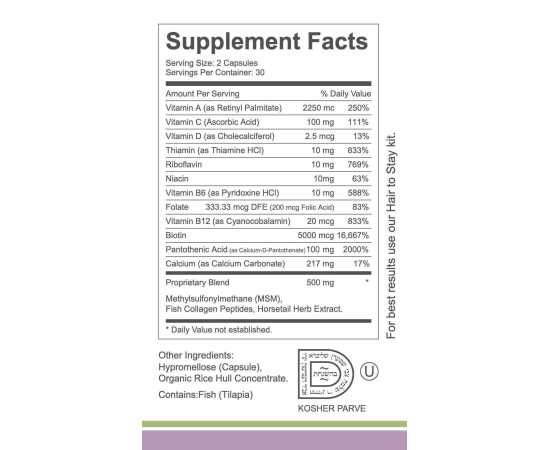 - As a dietary supplement, take 2 HAIR TO STAY Capsule daily with food and feel the difference yourself