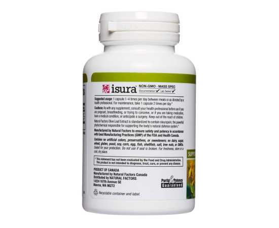 - Standardized Olive Leaf (Olea europaea) 20:1 extract, Oleuropein (15%), Rice powder, gelatin capsule (gelatin, purified water), magnesium stearate (vegetable grade)