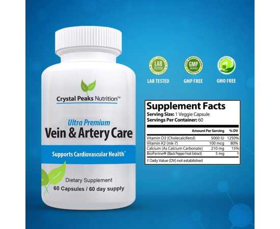 - Supports a healthy cardiovascular system: vitamin D3, vitamin K2 and calcium carbonate in the care of veins and arteries help improve blood circulation