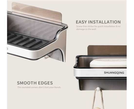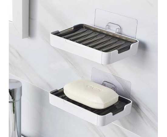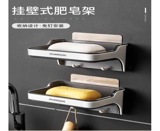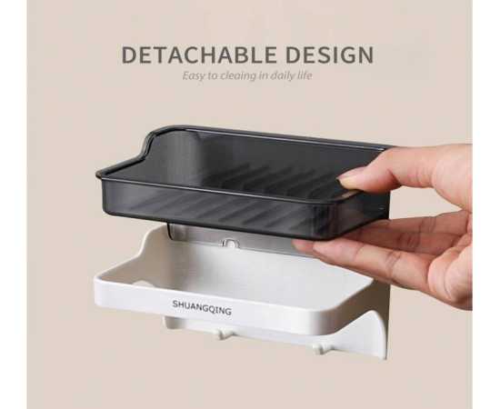 Soap Dish Double Layer Bathroom Wall Mounted Punch-Free Drain Box
