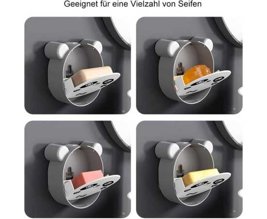 - AT - Wall Mounted Soap Dish Cute Cartoon Portable Soap Box Double Drain Waterproof Closed Covered