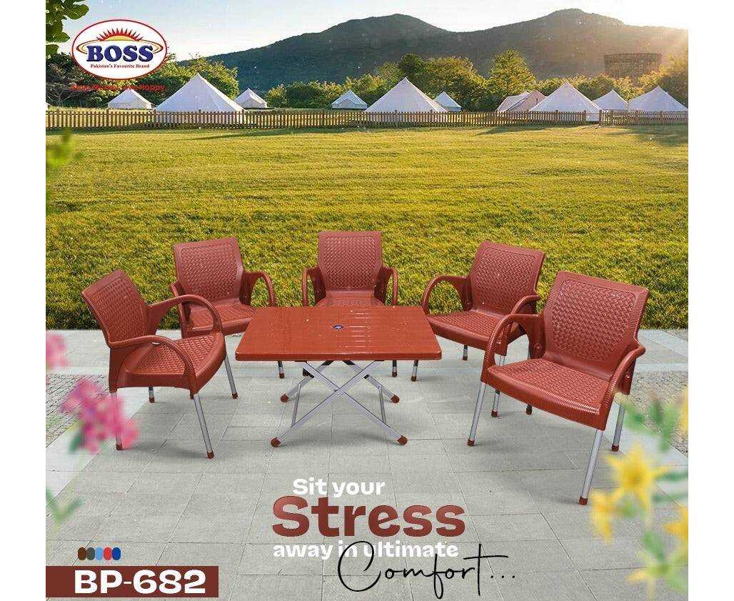 - Boss Chair Set Bp-682 Lino Rattan Plastic 4 Chair With Bp-214-S Folding Table