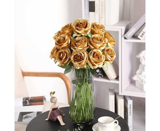 Artificial Rose Bunch Flower Silk Flower Decor - Golden