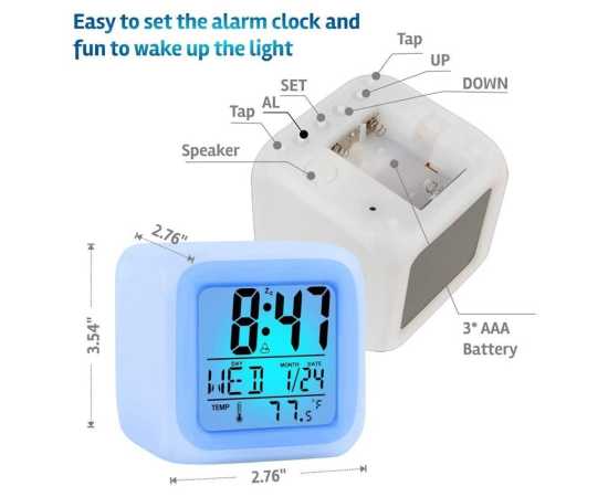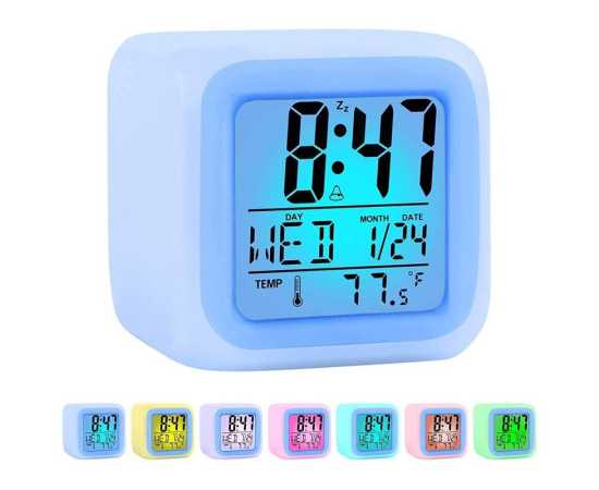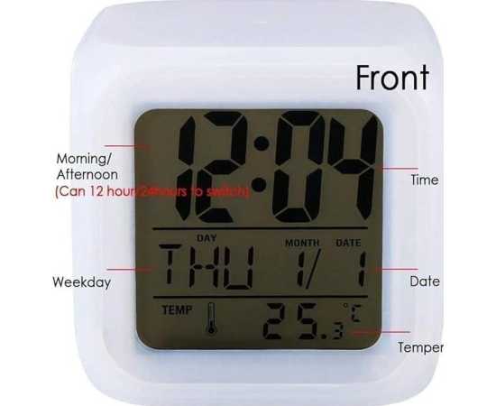 Digital Alarm Clock 7 Color Changing Led Light Big Size