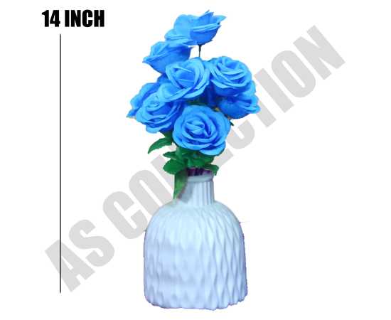 Nordic Luxury White Vase Plus Blue Rose for Room Decor & Artificial flowers
