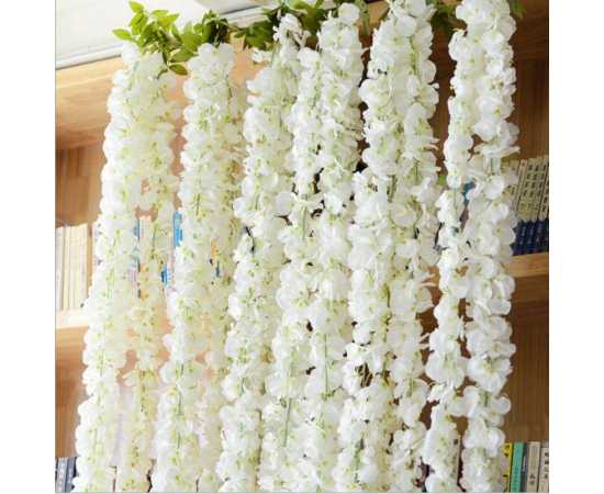 NS Collection - 3 heads White Wisteria Garland Hanging Flowers