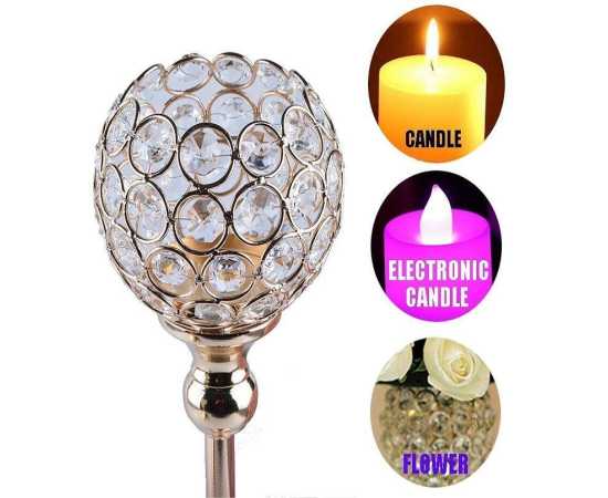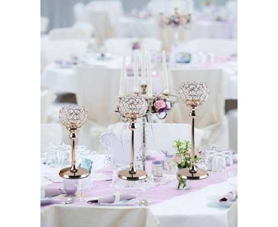 Pack Of 3 - Crystal Candle Lantern Gold Candle Holders