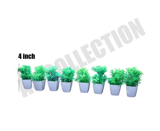Pack of 8 Mini Green Plant Artificial Decoration Piece with pot