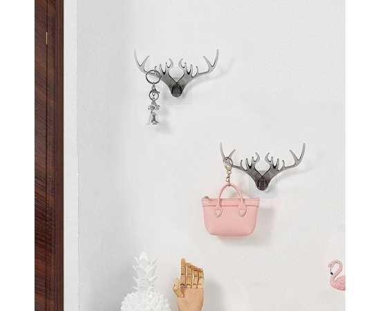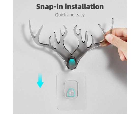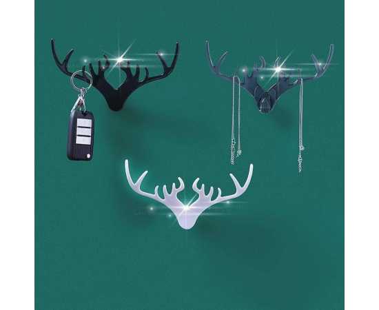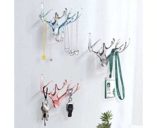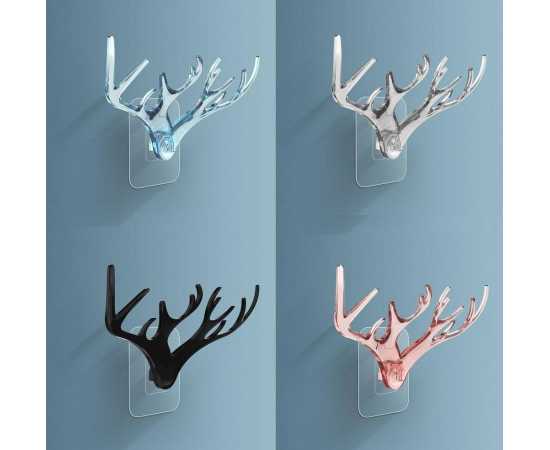 Deer Head Horn Shaped Key Holder Sticker Wall Hook - 1 Piece