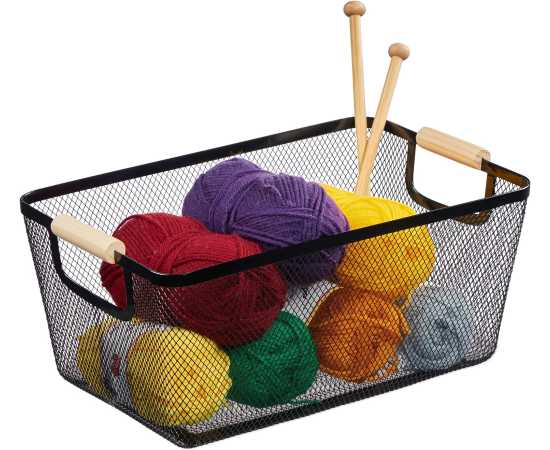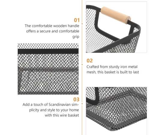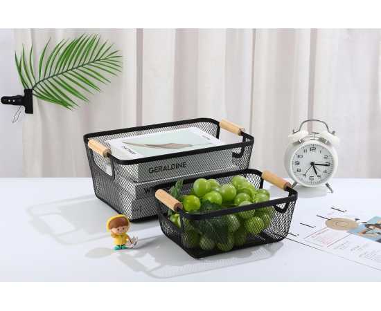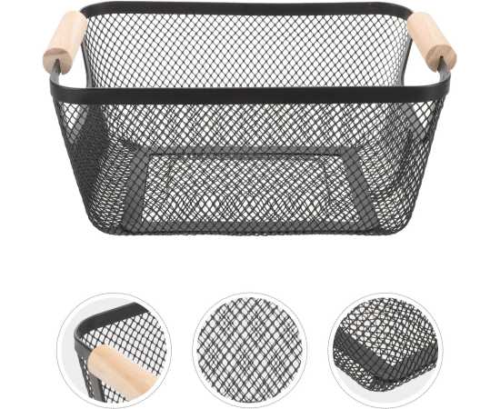 - Baskets with Wood Handle for Shelves Kitchen Cabinets Bathroom FoodÂ