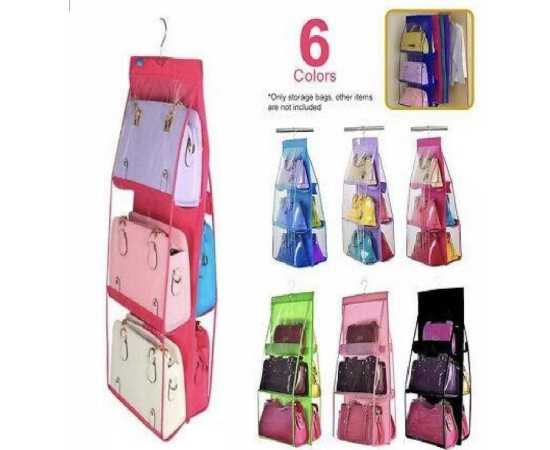 - 6 Pockets Hanging Purse Handbag Organizer Clear Hanging Shelf Bag Collection Storage Holder Collection Wardrobe Closet Space Saving Anti-dust Cover