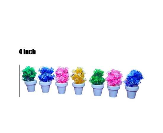 Set Of 7 Multicolors Artificial Flower Potted Plants