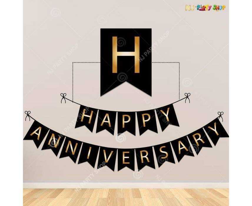 - Large Size Happy Anniversary Banner in Black and Golden Words.