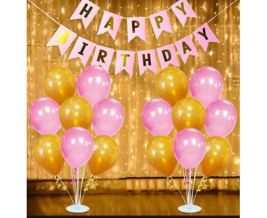 - Product details of Happy Birthday Theme Golden/Pink/Blue Combo ( Including Birthday Banner + 30 Latex Balloons )Â
