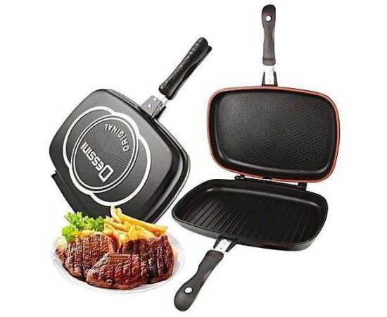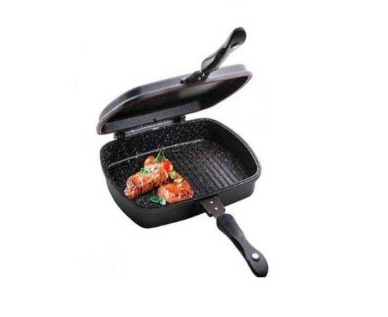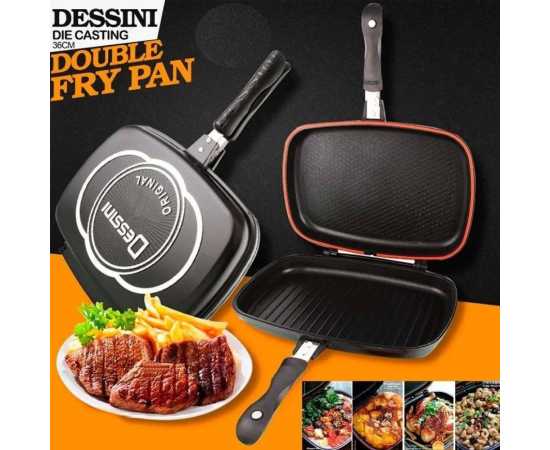 - Introducing our Non Stick Double Sided Grill Pan - BBQ Grill in Black! This cookware is made with high-quality stainless steel, ensuring durability and longevity.Â