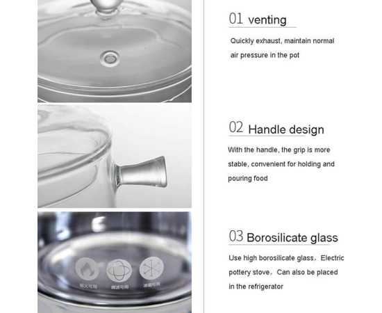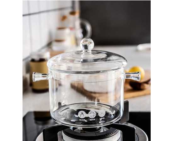 - Glass Pot, Clear Glass Soup Pot, Home Cooking, Lid Included,Â