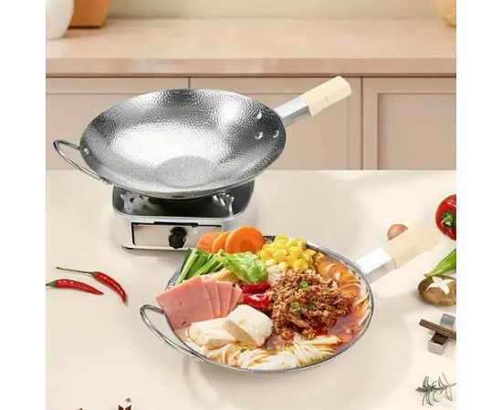 Stainless Steel Wok With Wooden Handle Double Handle Cooking Pot