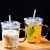Cartoon Printed Milk Glass Sipper Mug Jar With Straw And Lid