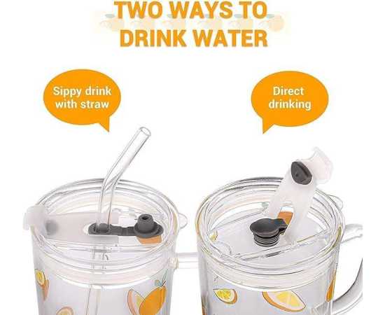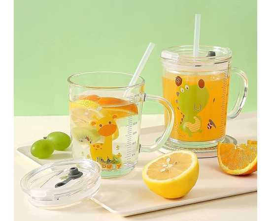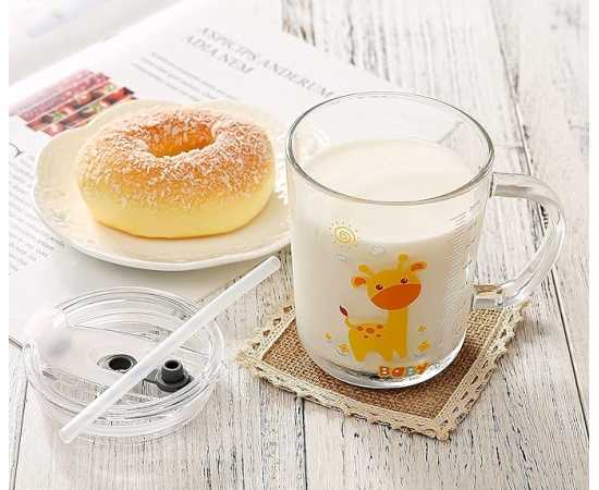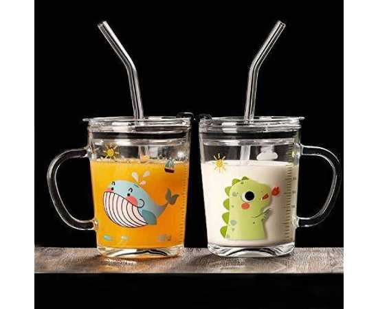- Cartoon Printed Milk Glass Sipper Mug Jar with Straw and LidÂ