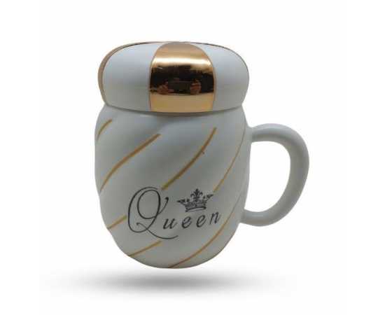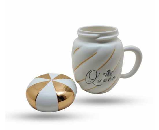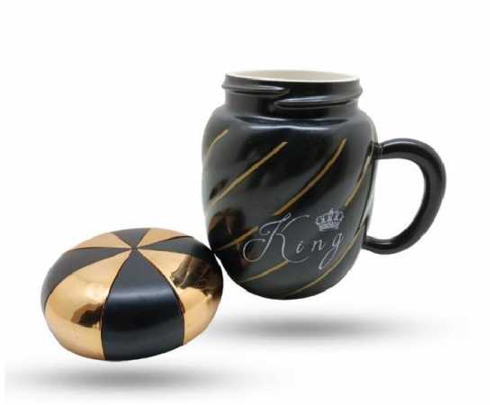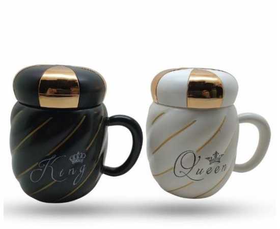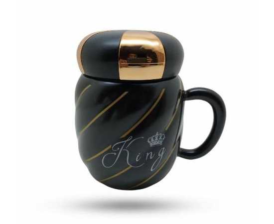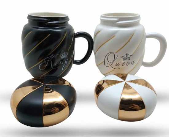 King Queen Ceramic Mug With Crown Lid Coffee