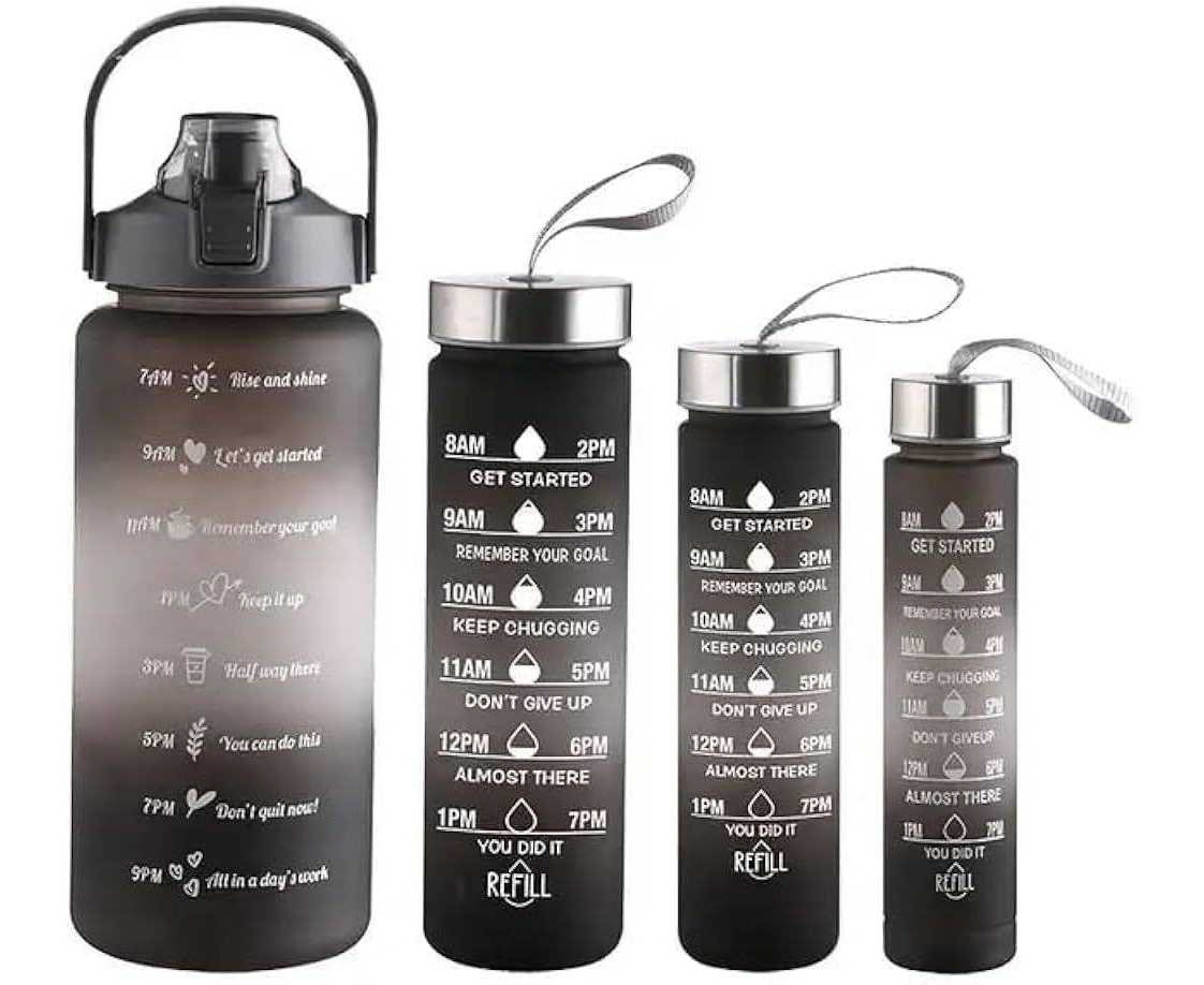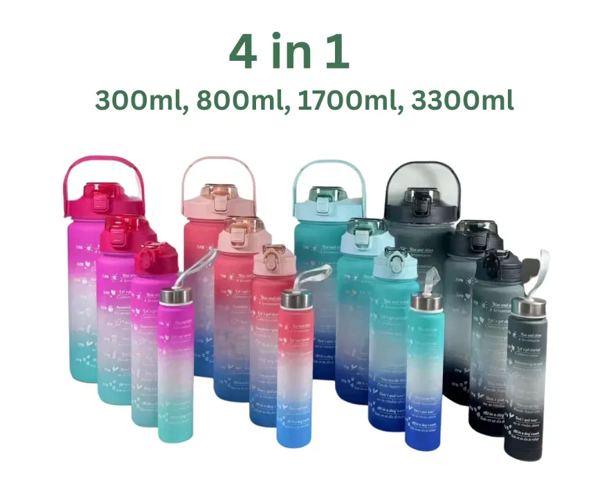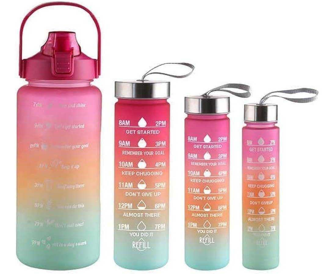Pack Of 4 In 1 Water Bottle With Time Marker To Drink Motivational Water Bottle